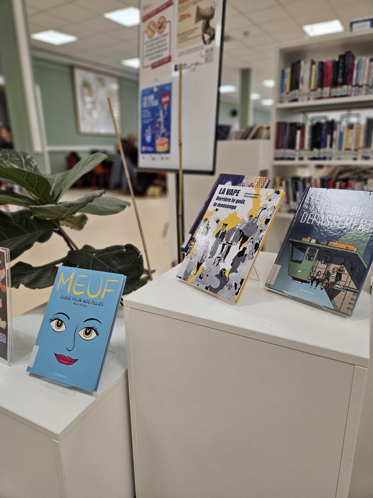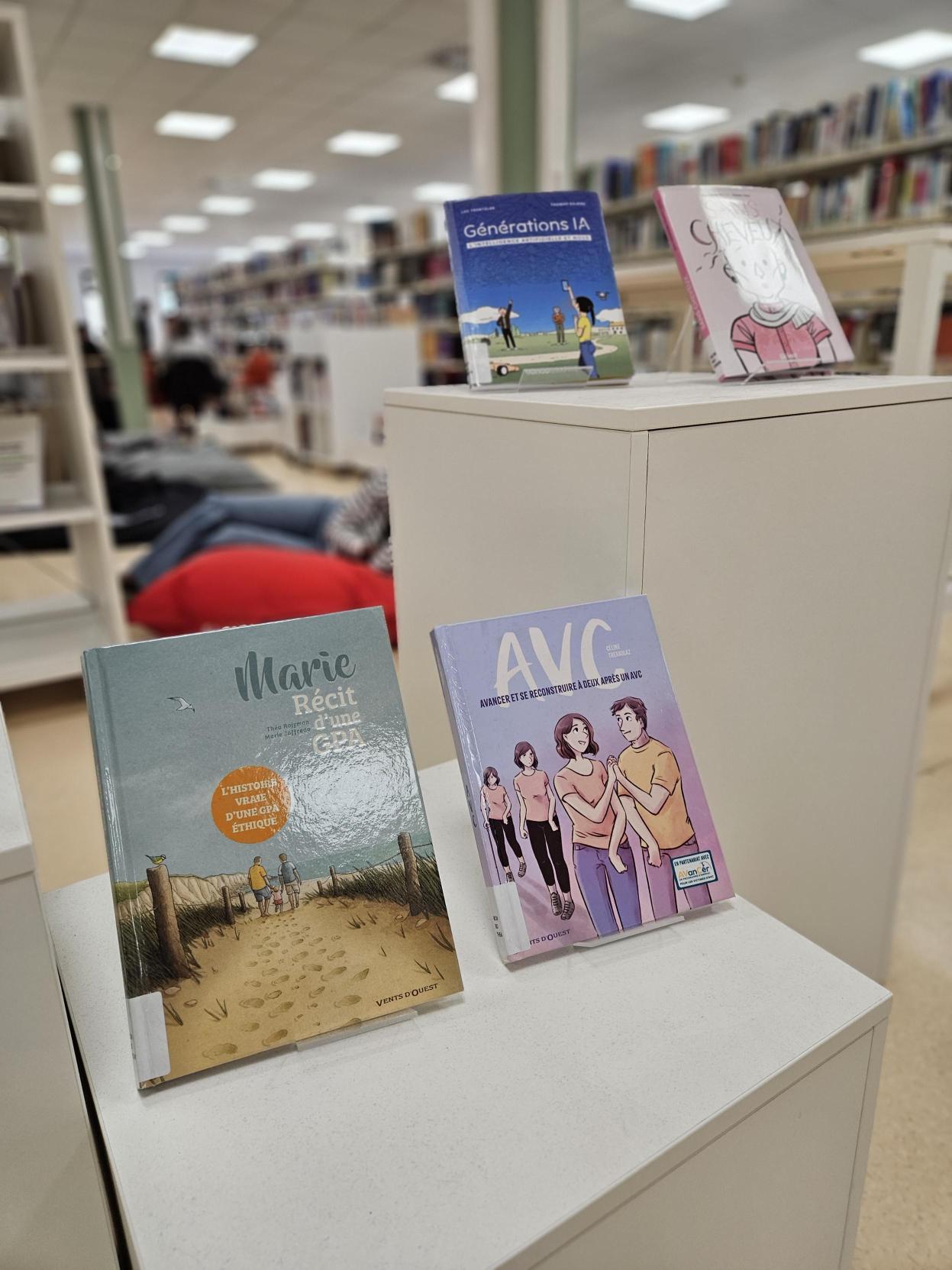 Ces ouvrages sont exposés à l’intérieur de la bibliothèque, dans un espace dédié, afin de permettre à chacun de les découvrir facilement. Ils sont disponibles à l’emprunt et n’attendent que leurs lecteurs.