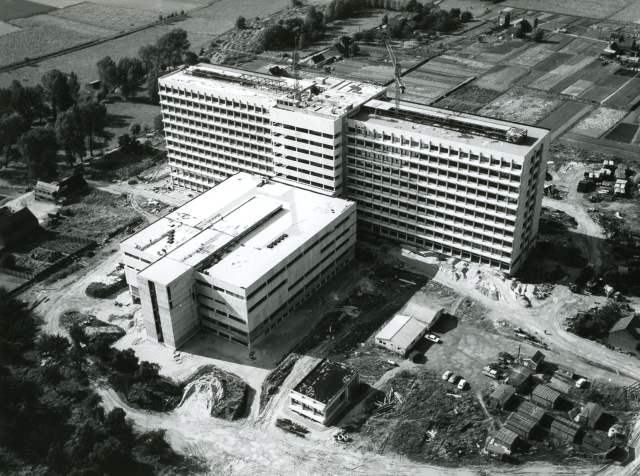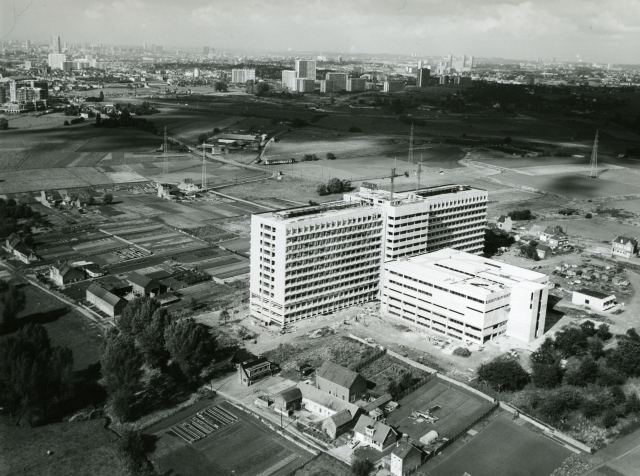 En 1968, un fonds du Ministère de la Santé Publique est alloué pour la construction d'un nouvel hôpital universitaire de 1.500 lits, subdivisé en 900 lits pour l'ULB et 600 lits pour la VUB. Une fois de plus, la concurrence avec l'UCL et son projet de construction de l'Hôpital Saint-Luc, de 900 lits à Woluwe-Saint-Lambert met la pression et fait accélérer la mise en œuvre du projet. Les travaux débutent en 1971 et le nouvel Hôpital Erasme est inauguré en 1977. On construit aussi au Campus Erasme le premier bâtiment universitaire abritant l'École de Santé Publique, créée en 1963. En 1978, on y adjoint des bâtiments accueillant des laboratoires ainsi que tous les enseignements ayant trait à la santé publique. En 1981-1982, y est rattaché le bâtiment C comprenant les laboratoires d'anatomie et de pathologie en provenance de la Rue aux Laines, des auditoires et l'Institut de Recherche Interdisciplinaire en Biologie humaine et moléculaire (IRIBHN).