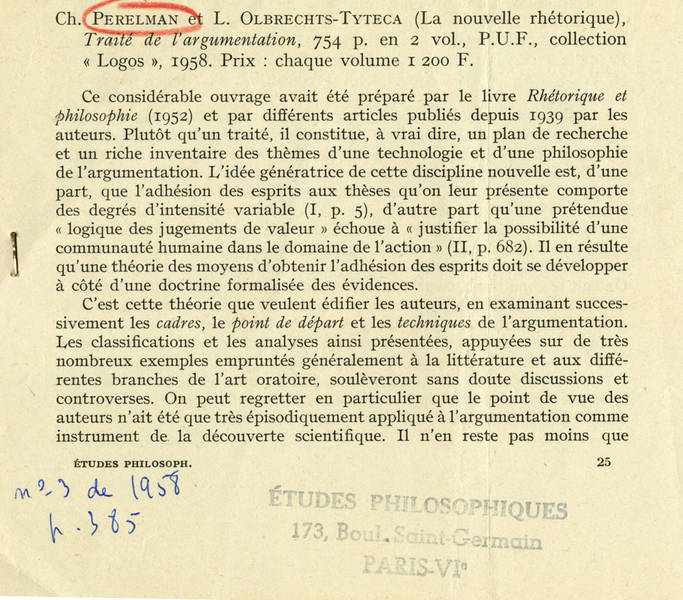 Fonds Chaïm Perelman, Archives de l'Université libre de Bruxelles, BE.ULB-ARCH/89PP 29.1