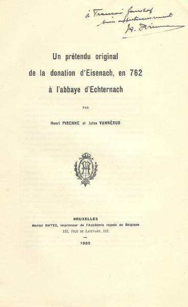 de Léon Theodor et de Henri Pirenne en 1922