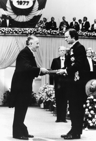 (Photographie : Remise du prix Nobel par le Roi de Suède 1977 - Archives de l'ULB)