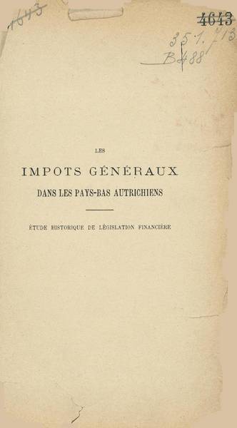 Cet ouvrage est l'édition de la thèse de doctorat en droit présentée par Georges Bigwood en 1899 à l'Universté libre de Bruxelles. Cette thèse reste, malgré le poids des ans, par son ampleur et son érudition une référence incontournable pour tous ceux qui étudient l'histoire des finances publiques et des administrations pendant la période autrichienne.