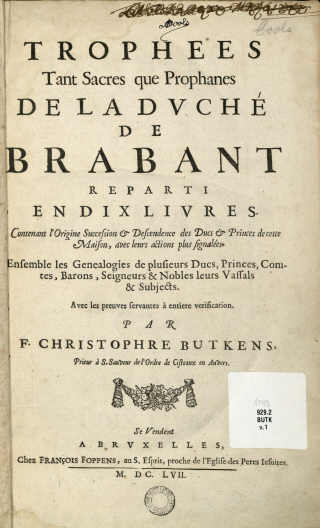 Les Trophées tant sacrés que profanes... publiés pour la première fois vers 1641 par Christophe Butkens, prieur de Saint-Sauveur de l'Ordre de Cisteaux à Anvers représentent une source fondamentale pour les médiévistes et modernistes étudiant la formation et le développement du duché de Brabant. Outre une histoire des familles qui régnèrent sur ce duché, l'ouvrage aborde également leurs relations avec les autres familles régnantes, leurs vassaux, leurs alliés et les administrations de leurs possessions.