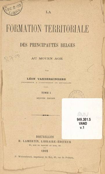 Dans le premier tome, il étudie les conditions de création d'un territoire frontalier entre l'Empire et la France lors de la scission de l'Empire carolingien et analyse la formation géographique du Comté de Flandre jusqu'à Louis de Mâle. Dans le deuxième tome, il étudie la Lotharingie (de la mer du nord jusqu'au plateau de Langres) et la formation des principautés sur ce territoire au XIIe siècle. Un troisième tome traitant de la Basse Lotharingie jusqu'au XVe siècle était prévu mais la mort de Léon Vanderkindere empêcha sa publication.